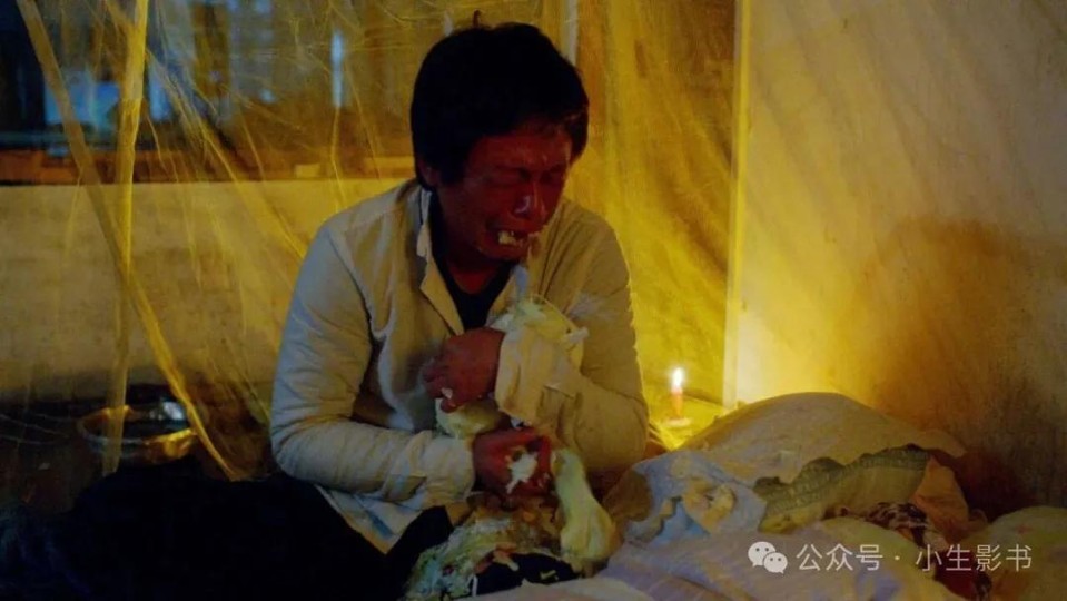 而如果说这一段满江红的呢喃,是对生活无声的控诉,那夜深人静时,独自在床上对一颗高丽菜的撕咬和随之而来的嚎啕,则是男人内心深处苦闷无处宣泄最歇斯底里的爆发。那些对着一颗高丽菜所做的大口啃啮、费劲撕扯、野蛮摁塞、用力咀嚼之间,裹挟着寂寞、哀怨、感伤、羞耻、酸楚诸多复杂情感的表达。